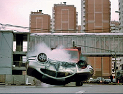 столкновение. В замедленной съемке показано, как при аварии молодой