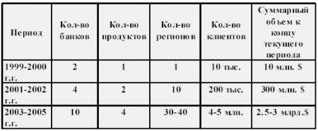Согласно прогнозам Центрального банка РФ и независимых участников этого рынка, перспектива на 2003-2005 гг. выглядит достаточно оптимистично. Сейчас активное присутствие здесь обозначают (или собираются это сделать в ближайшее время) около 10 банков: несколько банков предлагают стратегию многопродуктового ряда, другие – ставят на один продукт. С точки зрения восприятия стратегии вхождения на рынок любого инвестора, будь то иностранный или российский инвестор, возможны две модели - либо агрессивное развитие и, соответственно, довольно быстрое активное развитие сети отделений или точек продаж в многочисленных торговых сетях, либо осторожное и постепенное проникновение.