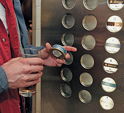 коробочку, полную табачных пакетиков, и закладывает один из них за