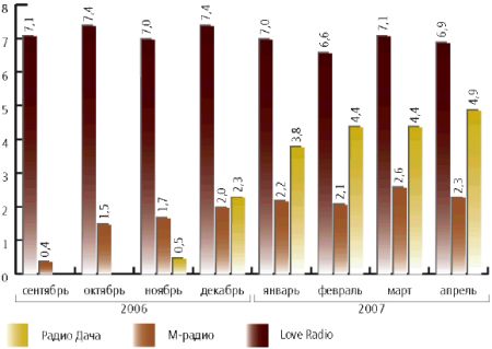 радиостанции Love Radio, «Радио Дача», «М-радио». Выручка в 2006