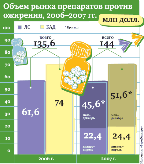 В целом группа БАДов, способствующая снижению веса, пользуется достаточно динамичным спросом – 2006 год показал прирост в 37%. Этот рынок еще не насыщен, и, согласно статистике, количество людей, страдающих избыточной массой, неуклонно растет. По данным ВОЗ, эта проблема актуальна более чем для одного миллиарда человек. В ближайшие 10 лет цифра может увеличиться до полутора миллиардов (при отсутствии надлежащих мер по решению проблемы). По различным оценкам, в России лишний вес имеет более 60% взрослого населения страны; каждый четвертый житель страны страдает ожирением.