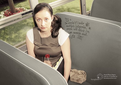 Рекламной девственности можно лишиться на Young Guns 2007"Разреши нам быть у тебя первыми" - именно под таким слоганом проходит эта рекламная кампания, разработанная канадским агентством Taxi для очередного фестиваля рекламы Young Guns 2007, участие в котором могут принимать только молодые креаторы.В состав кампании входит интернет-сайт и несколько плакатов, с которых молодые рекламисты открывают нам свои самые сокровенные мысли: "Мне 26, и меня еще никогда не награждали. Может, со мной что-то не так?" "Мне неважно, кем будет мой партнер - парнем или девушкой. До тех пор, пока я вкладываю туда часть себя." "Я боюсь, что если я войду сразу в несколько категорий, то люди подумают, что я шлюха рад наград." Агентство: Taxi, Канада |