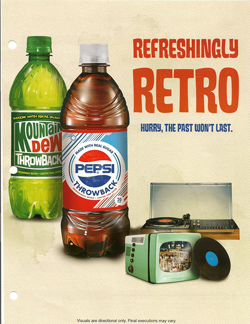 20 апреля компания PepsiCo выпустит на рынок два напитка: Cola и Mountain Dew. Они будут продаваться в бутылках и банках, которые уже использовались в 60 и 70 годах.