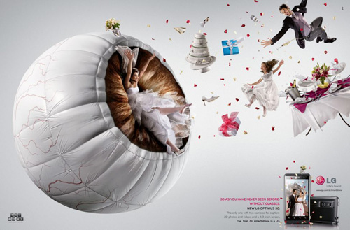 В рамках выхода на рынок нового смартфона с 3D-эффектом, компания LG выпустила серию принтов, где демонстрирует инновационные функции гаджета. Главной его особенностью, по словам представителей компании, является экран, а также две фотокамеры, которые позволяют снимать в 3D.