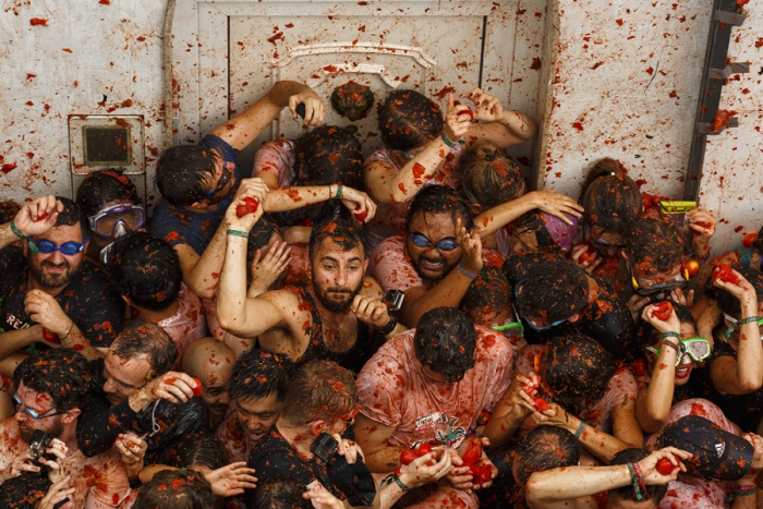 И все это помидорное расточительство проходит в небольшом средиземноморском городке каждый год, в последнюю среду августа уже 72 года подряд. Толпы людей забрасывают друг друга томатами, стены домов покрываются помидорным месивом, все это стекает и превращается в кетчуп, в котором некоторые с удовольствием купаются. Количество желающих попасть в томатную гущу событий растет с каждым сезоном.