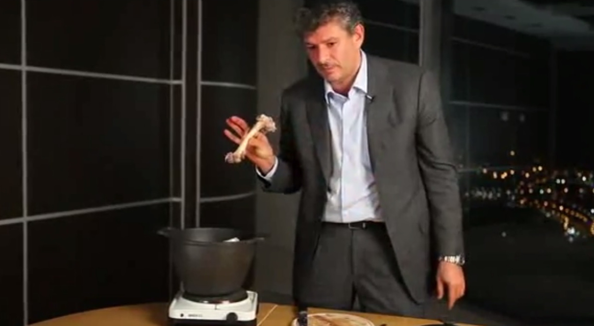 Успехи компании г-н Малис проиллюстрировал на примере разделывания куска бараньей ноги, с которой мясо досталось «Евросети», а кость - конкурентам. «Хотя я посмотрел на эту косточку, и понял - просто так отдавать ее конкурентам жалко. Я подумал, что ее надо засунуть им в ж***», - заявил бизнесмен в ролике.