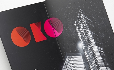Айдентика и логотип получились яркими и запоминающимися, с авангардной типографикой, перекликающейся с архитектурой башен. Рекламные материалы, выполненные по разработанным гайдлайнам «ОКО», привлекают внимание и запоминаются не только потенциальными покупателями, но и просто жителями Москвы.