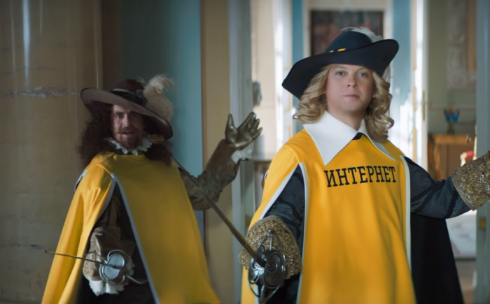 «Билайн» и креативное агентство Contrapunto представили новую рекламную кампанию в поддержку обновленных тарифов «ВСЁ!» с двойным пакетом мобильного интернета. На этот раз противостояние 4G-интернета «Билайн» в исполнении Сергея Светлакова и другого интернета «Билайн» от Аллы Михеевой развернулось почти что в декорациях романа Александра Дюма «Три мушкетера» в музее-усадьбе «Архангельское».