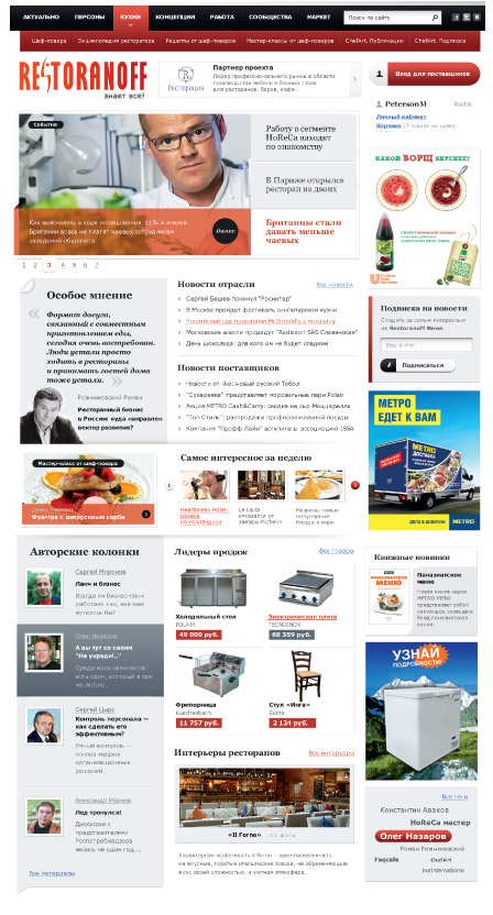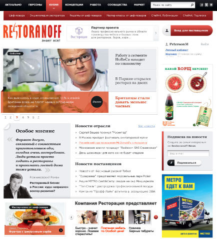 Реклама для профессионалов-рестораторовИнформационно-поисковый портал в индустрии питания и гостеприимства Restoranoff.ru изменился - вышла в свет новая версия, сохранившая аудиторию и контент. В запуску новой версии приурочена масштабная имиджевая рекламная кампания Интернет-портала Restoranoff.ru под слоганом "Я знаю о ресторанах много, Restoranoff - знает все!". Лицом рекламной кампании Интернет-портала стал ведущий эксперт отрасли и главный ресторанный критик Олег Назаров. Этот выбор не был случайным: Олег Назаров абсолютный лидер по узнаваемости целевой аудиторией и как никто в отрасли известен в регионах. Его книги давно стали бестселлерами, а проводимые им семинары и тренинги пользуются огромной популярностью. Образ Олега Назарова - яркого и преуспевающего профессионала, полностью совпадает с ценностями проекта и ценностями партнеров и пользователей Интернет-портала Restoranoff.ru. Креативная концепция разработана специалистами Издательского дома "Ресторанные ведомости", в структуру которого входит портал Restoranoff.ru Новый эргономичный дизайн Restoranoff.ru стал современнее и проще для восприятия, облегчив пользователям доступ к контенту и упростив навигацию по разделам. Но у портала Restoranoff.ru поменялся не только внешний вид - изменилась его структура, архитектура, появились новые сервисы и новые разделы. Оптимизированы многие алгоритмы работы Интернет-проекта, добавлены новые полезные опции. Появилось графическое выделение наиболее значимых событий и новостей, реструктурированы тематические рубрики, отдельным разделом вынесены новости и аналитика, доработан раздел о ключевых персонах рынка и обновлен кулинарный раздел - в основу которого легли рецепты и мастер-классы ведущих шеф-поваров. Радикальные изменения коснулись одного из самых важных разделов портала - базы товаров и услуг для индустрии гостеприимства, раздела Маркет. Обновленная структура базы позволяет продавцам с выгодной стороны показать товар, а покупателям - сделать правильный выбор. Несмотря на редизайн и полную реструктуризацию портала вся информация, опубликованная на сайте с момента его запуска, сохранена. ![]() ![]() |