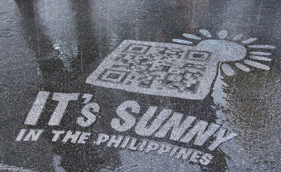 Креаторы местного подразделения Geometry Global нанесли специальную краску на тротуары, которая проявляется при попадании воды на ее поверхность. В сообщении говорится: «На Филиппинах солнечно!».
