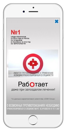 При этом не потребуется никаких дополнительных затрат на производство креатива. Например, активно развивающийся формат мобильного видео позволяет публиковать уже готовые рекламные видеоролики, добавляя к ним такую немаловажную функцию, как переход на сайт производителя. Это значит, что потребитель сможет сразу же подробнее ознакомиться с продуктом и принять решение, а это повысит процент самостоятельных покупок в аптеках. Кроме того, размещаясь на мобильных версиях сайтов и в приложениях, бренды могут установить единую кросс-частоту. Миллионы людей увидят рекламу по всей России, и она не будет вызывать раздражение, так как будет известно, сколько раз ролик был показан каждому конкретному пользователю.