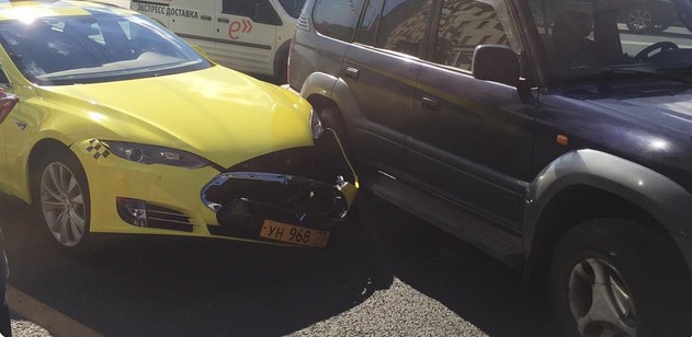 Один из автомобилей Tesla сервиса «Яндекс.Такси» попал в Москве в ДТП. По фотографиям, опубликованным очевидцами в Instagram, видно, что в Tesla врезался внедорожник. В результате столкновения пострадавших нет.
