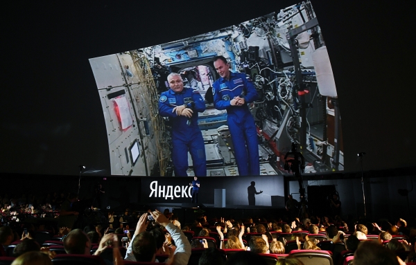 Во время мероприятия руководитель «Яндекс.Поиска» Андрей Стыскин вышел на прямую видеосвязь с российскими космонавтами Федором Юрчихиным и Сергеем Рязанским , которые сейчас находятся на борту МКС. Стыскин спросил, как в космосе обстоят дела с интернетом, правда ли, что все космонавты перед полетом в космос смотрят фильм «Белое солнце пустыни», а также задал несколько вопросов от пользователей «Яндекса».