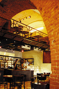 При строительстве "Кофемании" для того, чтобы увеличить небольшую площадь (учитывая дорогую аренду в центре Москвы), надстроили второй этаж из грубого металла - получилось очень даже стильно (фотка с кирпичными сводами на переднем плане) |