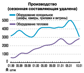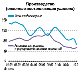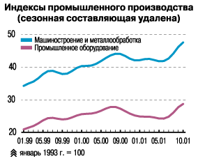 Единственный сегмент машиностроения, где еще бурлит жизнь, - производство бытовой техники и радиоэлектроники. На работу этого сектора влияет расширение потребительского спроса на непродовольственные товары, возобновившееся в последние месяцы. Впрочем, даже если расширение выпуска здесь сохранится, рассчитывать на то, что данная подотрасль вытащит все машиностроение, не приходится, поскольку ее доля в машиностроительном выпуске гражданской продукции не превышает 4-5%.