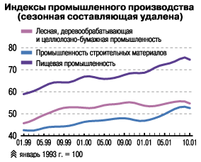 опережающая динамика производства в пищевой промышленности вследствие повышения платежеспособного спроса населения, а также значительного прироста продукции растениеводства урожая 2001 года.