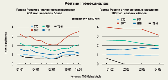 На российском телевизионном рынке работает аналогичный стереотип. Российскую национальную тройку составляют ОРТ, РТР и НТВ. Очевидно, чтобы взломать устоявшуюся структуру, СТС будет необходимо не только насытить эфир собственными развлекательными шоу, но и наладить производство высококачественных информационных и политических передач. Акционеры не устают повторять, что политика их не интересует. Однако верится в это с трудом, тем паче что приглашенный ими Роднянский - большой спец по общественно-политическим программам. Скоро выборы, и на политике можно будет неплохо заработать. Отсутствие же интереса к политике у "Альфа-груп" в принципе вызывает сомнение.