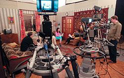 Станислав Ершов, генеральный директор киностудии имени Горького: Павильонные площади сейчас в огромном дефиците, их загрузка на сегодняшний день составляет 80%. Главное для киностудии -- это не предоставление павильонной площади, а оказание полного спектра услуг в области кинопроизводства -- от строительства декораций до обработки пленки. В связи с этим студии более выгодны кинопроекты, нежели сериалы. Ведь съемочный период кинофильма занимает 45 дней, сериал же может сниматься в павильоне и два, и три, и четыре месяца.