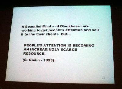 Президент фестиваля Golden Drum Юрий Апих имеет великолепное чутье: в рамках Media meeting на фестивале было более десятка классных лекций по new media: Как делать рекламу, которая преодолевает барьер невнимания? Как доставить ее к человеку? Как изобретать новые медиа?