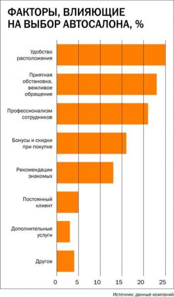 Однако на практике оказывается, что при покупке автомобиля престижных марок – таких, как Mercedes, BMW, Audi, месторасположение салона не играет столь значимой роли, как, например, в демократичных сегментах. Здесь на первый план выходят как объективные факторы (если человек решил купить, скажем, новый Porsche, то он сможет выбирать только между двумя официальными дилерскими центрами этой марки), так и субъективные характеристики конкретных автосалонов.
