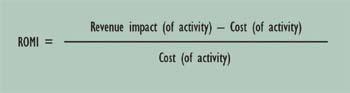 Чтобы добиться обещанного, методы ROMI обычно концентрируются на отдельных видах маркетинговой деятельности, например, на рекламной кампании или программе прямой рассылки. Затем методы ROMI пытаются измерить стоимость каждой кампании, ее влияние на продажи и прибыль, и установить планку, которую должны преодолеть другие виды маркетинговой деятельности, чтобы их профинансировали.