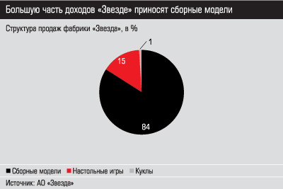 Самым трудным для "Звезды", как и для многих российских компаний, был период от "черного вторника" до дефолта. Зато потом, начиная с 1998 года, компания несколько лет набирала обороты фантастическими темпами: скажем, в 2000 году рост составил 250%. Сейчас продукция "Звезды" продается во всех городах России через 300 оптовых компаний и занимает 75% российского рынка сборных моделей. Реальных конкурентов у нее нет: продукция большинства отечественных производителей сопоставима по цене, но отстает по качеству, ассортименту и силе торговой марки. Западные и восточные производители по качеству и торговой марке находятся на высоте, но цена их изделий в два-пять раз выше.