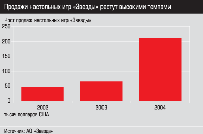 Осознавая эти риски, "Звезда" три года назад вышла на новый для себя рынок - занялась настольными играми. Направление диверсификации было выбрано очень удачно - об этом свидетельствует рост продаж настольных игр "Звезды": в 2004 году они увеличились втрое по сравнению с предыдущим годом и составили около 6 млн рублей. Рынок настольных игр намного больше рынка сборных моделей (последний, по данным "Звезды", составляет 6-7 млн долларов). К тому же здесь почти нет конкуренции со стороны зарубежных игроков, ведь правила должны быть написаны на родном языке, желательно с учетом традиций и менталитета местного населения. Видимо, возиться с ними иностранцам просто неохота.