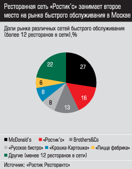 Создав альянс с крупнейшей американской сетью Yum!Brands, российская ресторанная сеть "Ростик`с" намерена потеснить лидирующую на нашем рынке быстрого питания компанию "Макдональдс"