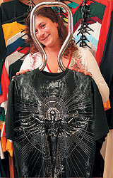 | | Фото: СЕРГЕЙ МИХЕЕВ | | Ульяна Скалон: "Раньше рекламные футболки привозили с собой, но после дефолта все стало выгоднее печатать в России" | Илона Гайдай: Наша задача не гламур, которого и так достаточно, а качественная дизайнерская одежда, чем у нас пока занимаются единицы. Мы работаем на аудиторию, которая не заморачивается. В месяц мы делаем один новый дизайн, это примерно 30-50 футболок, которые продаем через интернет-сайт и шоу-рум одного клуба. У нас уже тысяча подписчиков. К сожалению, в Москве в отличие от Европы практически нет магазинов дизайнерской стритовой одежды. У нас еще люди привыкли демонстрировать одеждой свой доход, а не интеллект.