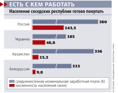Идея развивать бизнес в Белоруссии или на Украине кажется куда более здравой, нежели мысль о походе куда-нибудь на Дальний Восток. Манит и Казахстан — расстояния тут побольше, зато большинство платежеспособных граждан живут всего в четырех крупных городах: Алма-Ате, Астане и нефтяных Актау и Атырау. Плюс во всех трех республиках очень высок процент русскоговорящего населения.