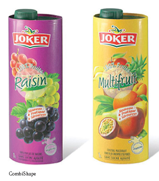 Сегодня компания «Комби блок» не перестает вносить новаторские решения и предлагает новый уникальный формат CombiShape. Особенность CombiShape заключается в том, что каждый производитель закрепляет свою собственную форму пакета за собой. Формы бывают разные: овалы, различные ногогранники, полумесяц и т. д. — всего 40 видов. Усилить впечатление от этого уникального формата можно необычным дизайном. В настоящий момент фирма Eckes Granini (Франция) уже выпускает соки Joker в пакетах СombiShape, и продажи компании под этим брендом растут даже на стабильном и не растущем рынке соков Франции, отметил г-н Антипов.