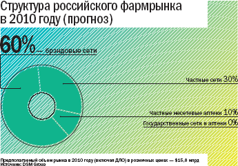 2010 году они увеличат свою долю до 60%, а государственные аптеки и