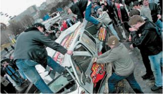 удара, джип полетел в сторону стоявшей в десяти метрах онемевшей толпы. Но ни