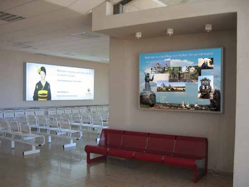 Видеореклама на LCD и плазменных телевизорах в залах вылета и прилета. Динамичная картинка всегда привлекает больше внимания человека, чем статичная. Правильно подобранный рекламный ролик всегда заинтересует скучающего пассажира и с большей вероятностью запомнится ему, чем реклама на ТВ.
