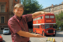 Владислав Ремиш: Мы с моим другом обедали и прикидывали, во сколько нам встал бы собственный ресторан. Сошлись на том, что самое дорогое в этом бизнесе -- аренда, и стали думать, как можно без нее обойтись. Вот и придумали двухэтажный автобус.
