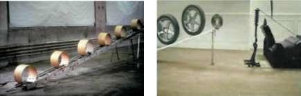 поливались водой, обдавались огнем и газом. В ролике «Желоб» по желобу двигались