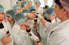 | | Фото: АЛЕКСЕЙ КУДЕНКО "Ъ" | | Пока "Красный Октябрь" не переехал из центра Москвы, он остается популярным объектом школьных экскурсий | Специализированное английское кондитерское издание Confectionery Production в прошлом году опубликовало исследование вкусов потребителей шоколада в разных странах. Скажем, во Франции, где шоколад появился одним из первых в Европе, ценят насыщенный вкус. Ароматные зерна из Ганы сильно обжаривают, в шоколадной массе много какао-продуктов.