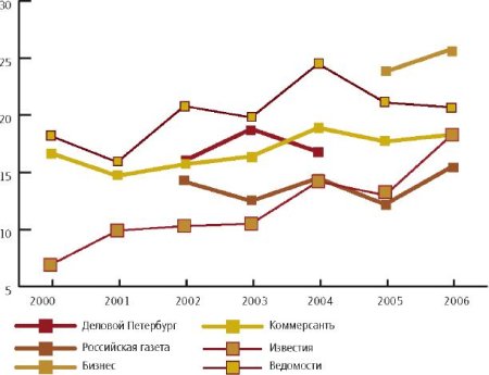 2006 года составляет 21%. У газет «Бизнес» и The Moscow Times (MT) - 26% и 45%