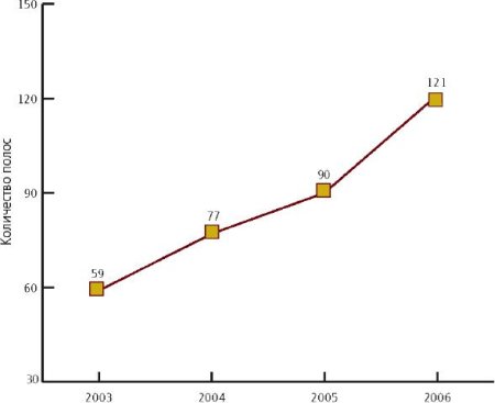 объем рекламы в справочнике вырос до 121 в 2006-м - ежегодно увеличиваясь в