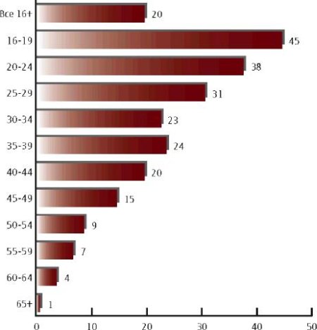 газетной продукции (33%) - от 45 до 54 лет (данные Национальной газетной