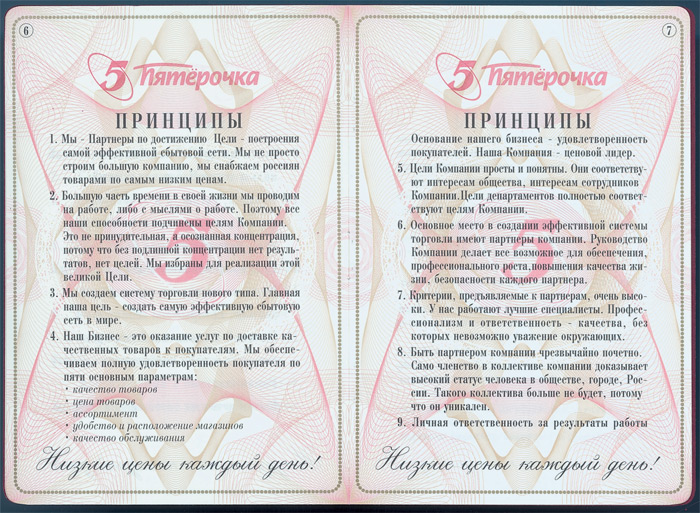 — Да все. Если найдете что-то плохое, смело пишите, что это от меня. Шутка. Поймите, каждый человек отдает душу своему предприятию. Соответственно, он вкладывает в него энергию. Например, возьмите паспорт «Пятерочки», где изложены основные принципы идеологии компании. Вы не поверите, в нем можно найти ответ на любой вопрос. Вот вы спрашивали, как учитывать ошибки. Открываем страницу. Первое: учись на чужих ошибках. Второе: извлекай пользу из неудач и поражений.