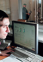 | | Некоторые этапы производства вовсе не требуют участия работников | Чтобы оценить, насколько промышленно произведенный сок может быть натуральным, мы решили увидеть производство соков собственными глазами. В городе Раменском на одном из заводов компании "Вимм-Билль-Данн" нам показали и рассказали, что фруктовые и овощные соки производят посредством разбавления (производители говорят -- восстановления) готовых концентратов. Концентрат -- это вовсе не тот памятный многим порошок, в который надо просто добавить воды. По сути это "сгущенный сок", который получают путем удаления из натурального сока воды. После чего концентрат замораживают и везут в больших емкостях на место производства. Там его откачивают из транспортных емкостей. Процесс откачки -- последний этап, когда сырье можно увидеть, что называется, "вживую". Производство соков представляет собой сплошные трубы, бочки, огромные цистерны и конвейеры. Проходя через них, концентрат разбавляется водой, обогащается дополнительными ингредиентами, пастеризуется и разливается в упаковку.