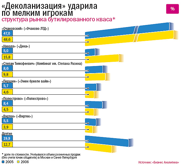 три раза -- с 5% до 15,8%. В списке крупнейших производителей кваса