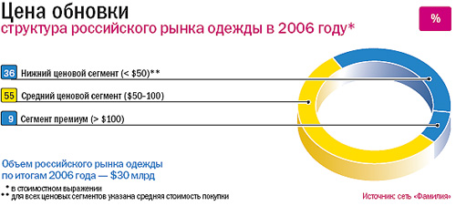 Оборот российского рынка одежды, по оценкам экспертов, в 2006 году
