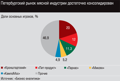 К 2003–2004 годам на рынке мясопереработки Северо-Запада сформировалась устойчивая тройка лидеров — завод «Кронштадтский», «Парнас-М» и «Пит-продукт». Втроем они занимали чуть меньше половины рынка. «Мы поняли, что заметно нарастить в регионе свою долю нам будет трудно, и приняли решение выходить на новые рынки, где можно получить существенный прирост продаж», — говорит Андрей Трухачев.