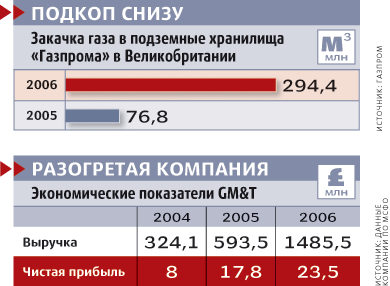 Разве это красная цена? В Англии холодной зимой 2005/06 г. спотовые цены в отдельные дни зашкаливали за $1500! Выручка GM&T в прошлом году выросла на 150%, объем продаж на 60%. В России за то же время Газпром увеличил выручку лишь на 32,6%, а продажи на 3%. Впрочем, рекорды дочки стали возможны из-за стечения многих обстоятельств.