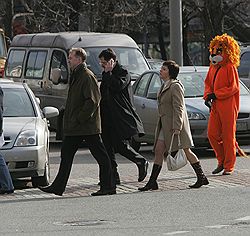 Как-то Нина Сабирова приехала на склад заказчика с новой партией готовых костюмов, а ее встретил кладовщик... в костюме бегемота. "Но в нем жарко! -- сказала Нина. -- Зачем же вы себя мучаете?" "А мне так нравится" -- невозмутимо ответил кладовщик. Это, конечно, особый случай. Обычно же актеру внутри куклы не позавидуешь. Ведь костюмчик весит пять-семь кило. Если зима, еще ничего, согревает. А летом, когда "за бортом" под 30 градусов, а на актере гора шерсти? Что ж, недаром, видно, этот бизнес -- для людей увлеченных, творческих, а еще -- для выносливых. Из-за немалых нагрузок (кстати, костюм ростовой куклы, как уверяют создатели,-- отличное средство для желающих сбросить вес) во всех фирмах время работы человека-куклы ограничено.