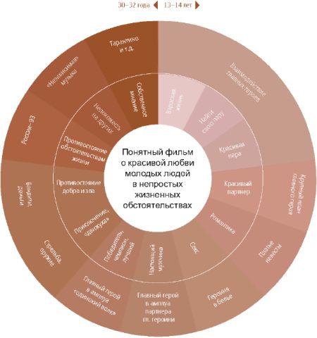 схему (диаграмма «Кино в разрезе»). В наружном круге — составляющие