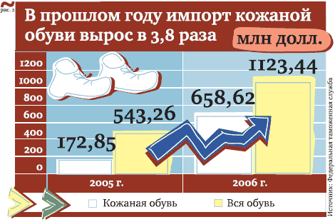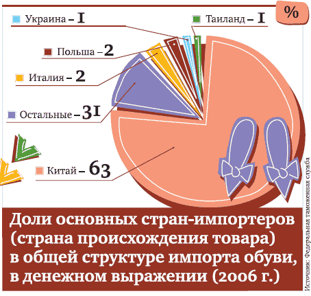 Слова Бережного подтверждают и данные Роспотребнадзора: количество выявленных образцов некачественной обуви иностранного производства в 2006 году в более чем 2 раза превысило показатели некондиции среди обуви отечественных фирм.