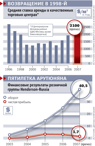 Обстановка благоприятствовала. Наталья Орешина, директор отдела торговой недвижимости Cushman & Wakefield Stiles & Riabokobylko, отмечает, что осенью 1998 г. арендные ставки в торговых центрах упали более чем вдвое. Если до того аренда стоила $2000-2500 за 1 м2, то после кризиса можно было войти в ТЦ за $800-1200.